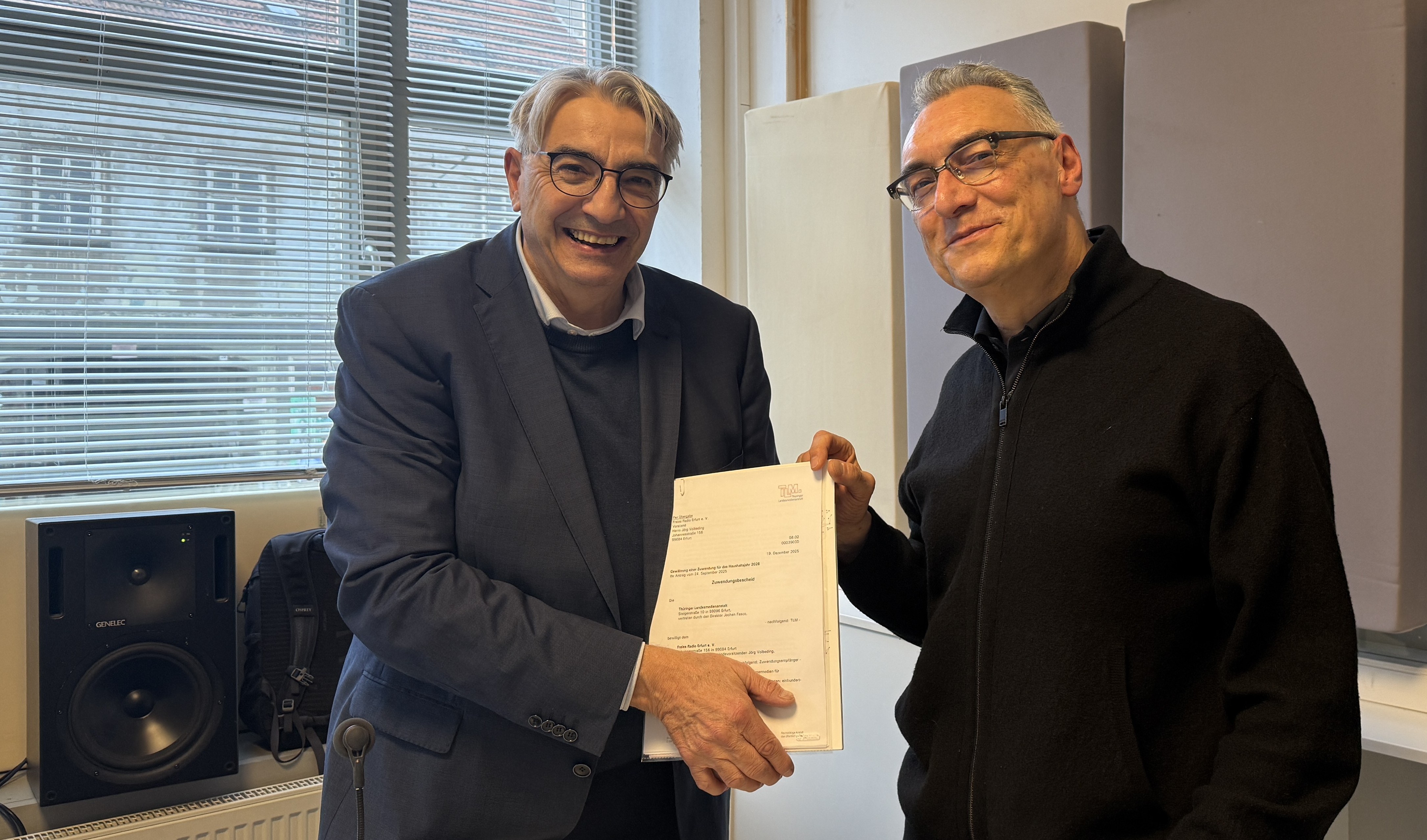 „Die Bürgerradios tragen mit ihrem Programm maßgeblich zur Medienvielfalt im Freistaat bei. Die Hörerinnen und Hörer honorieren dieses Engagement mit stabilen und guten Nutzungszahlen“, betont TLM-Direktor Jochen Fasco anlässlich der Übergabe eines Förderbescheides für das Jahr 2026.